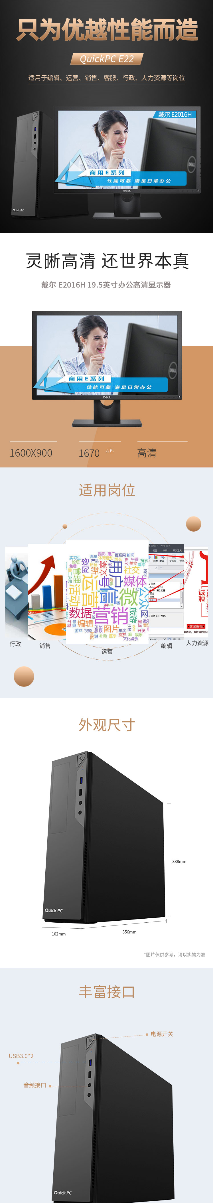 QuickPC E22 台式机 (G3930/4G/120G SSD/核显HD610/E2016H 1