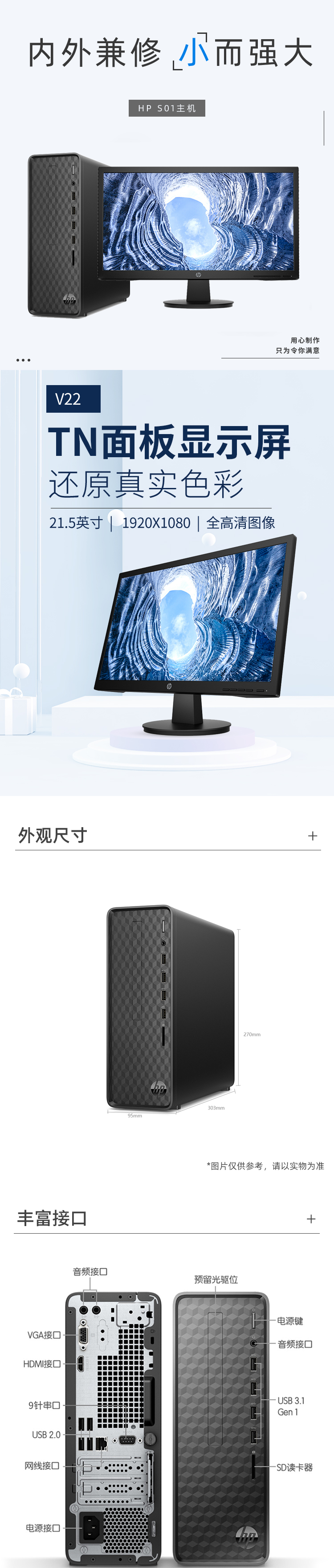惠普/HP S01 台式机 (i3-9100/8G/256G SSD/核显/V22 21.5英